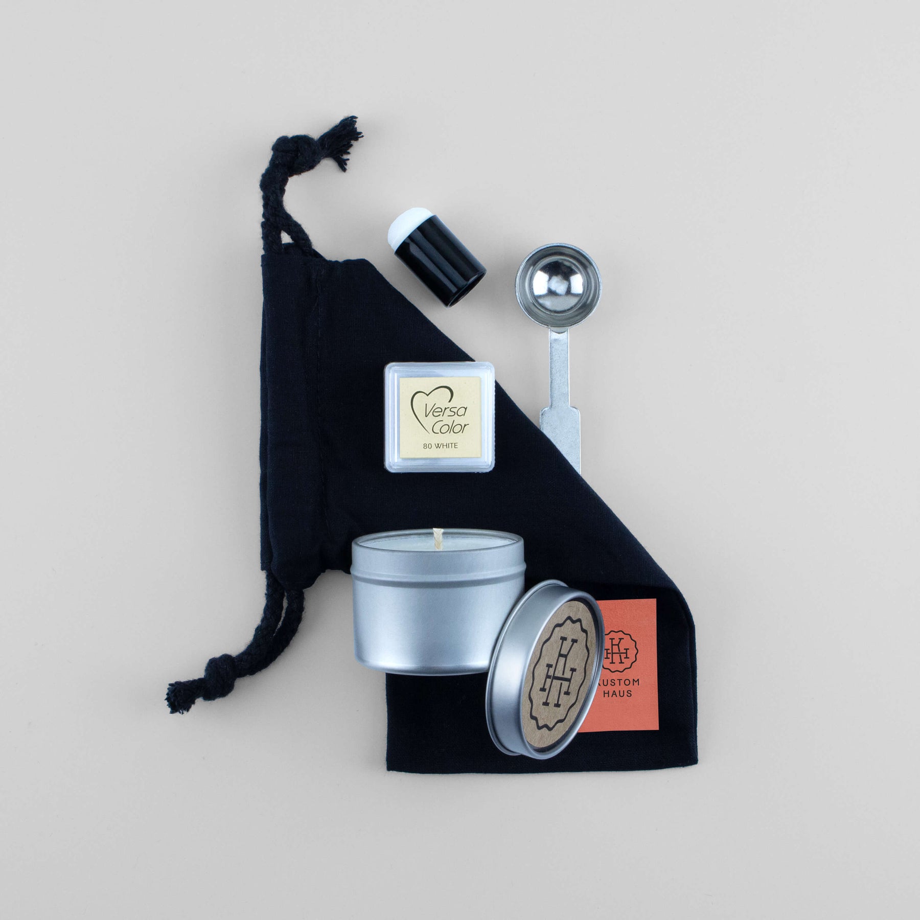 Bundle our must-have wax seal melting accessories in a sleek calico drawstring bag.
